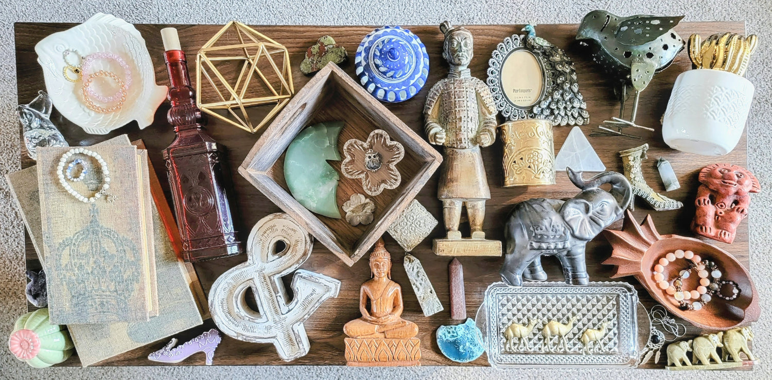 A random hodge podge of decor for the bookcase, shelf, counter top, windowsill, wall, or wherever your heart desires.