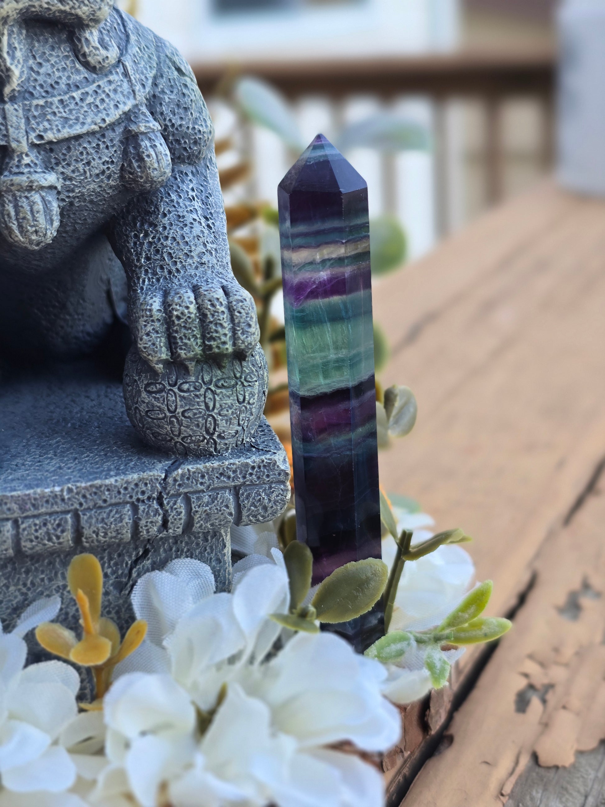 Fluorite is known as a crystal of mental order, clarity, and balance, helping to clear mental fog and bring order to chaos and biases. It is used to cleanse and align the chakras, particularly the Third Eye and Crown chakras, enhancing spiritual growth, intuition, and connection to higher wisdom.
