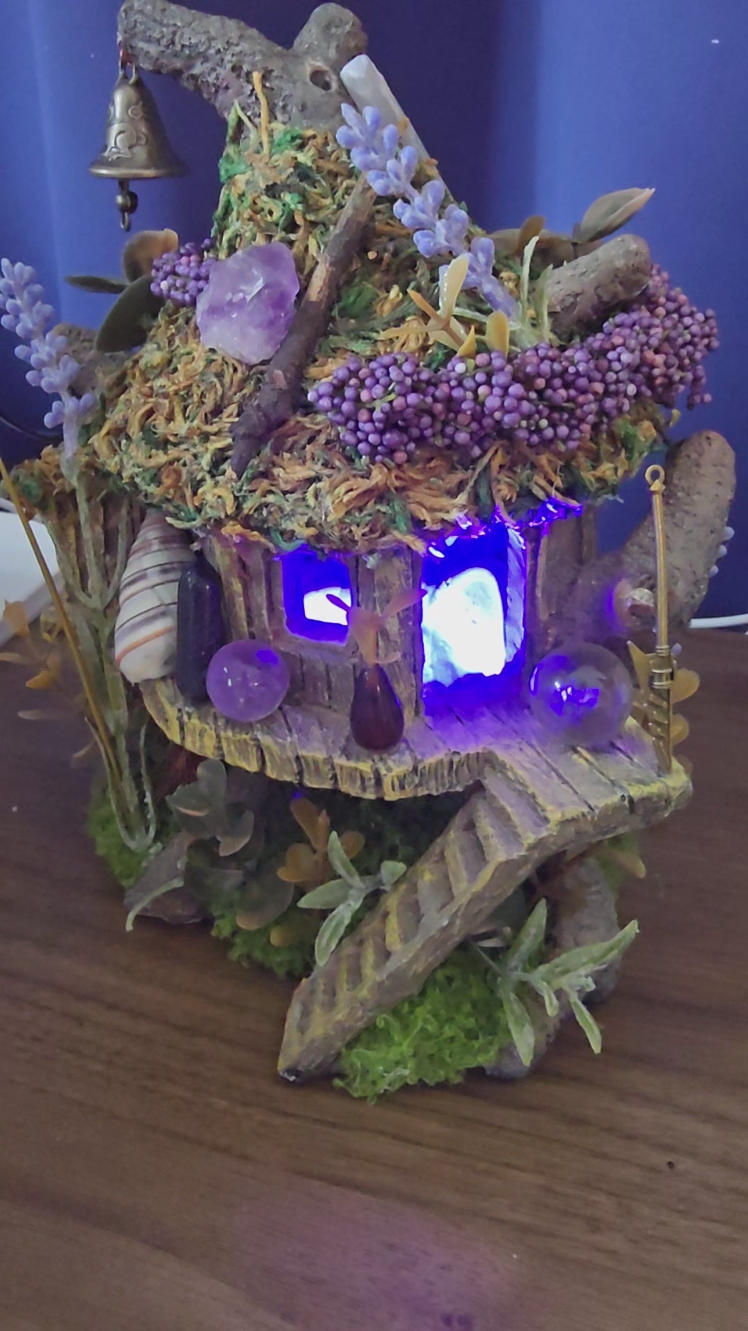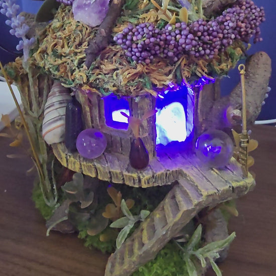 Introducing Thumbelina's Treehouse - a tiny, exquisitely-crafted home for the smallest of creatures. Decorated with faux foliage, shells, gemstones, carvings, and charms, this treehouse is the epitome of preciousness. And with a multicolored LED light included, it's perfect for nighttime display.