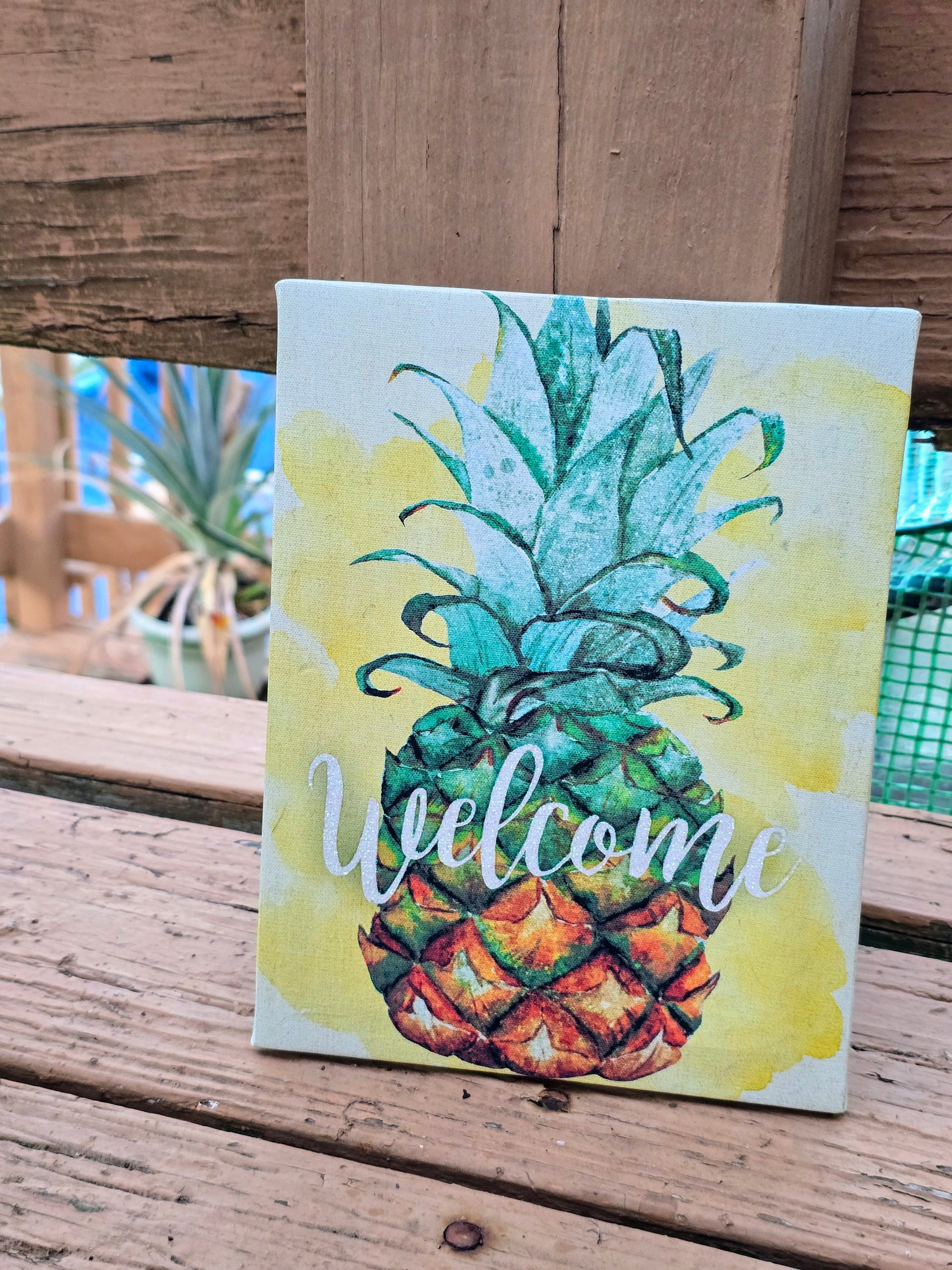 Welcome guests with a tropical touch with our Pineapple Welcome Sign. Perfect for summertime gatherings, this happy sign adds a fun pop of color to any home. Hang it on your door or in your entryway to set the tone for a playful and welcoming vibe. Aloha!