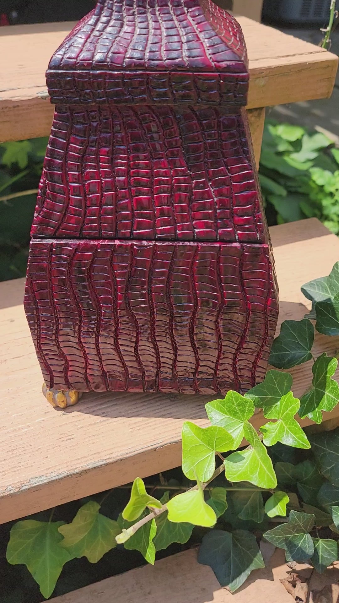 This unique Scale Stash Box features faux reptile skin and durable resin for a one-of-a-kind look and longevity. Keep your items safe and organized in style with a touch of quirkiness!